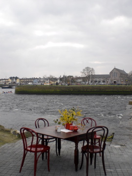 Much cuter was the tiny café right underneath the arch, with this dramatic seating area. This table and chairs set up on the shore of Galway Bay made for a strange tableau that was somehow simultaneously enticing and alienating: