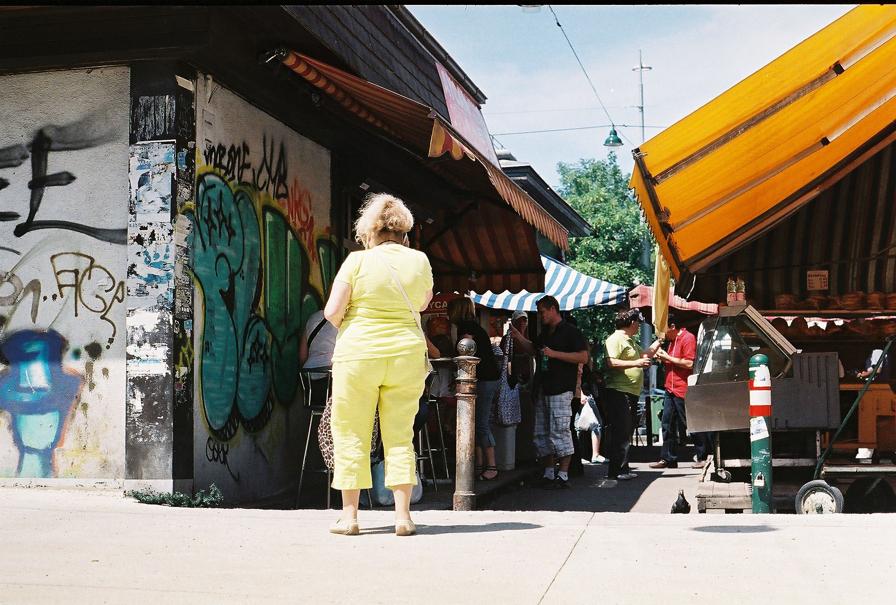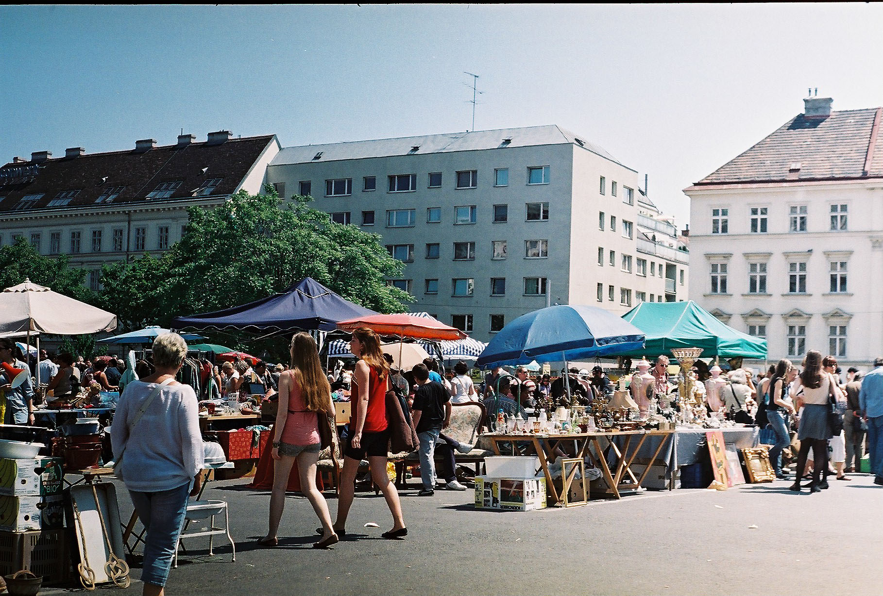 One Saturday morning a couple of weeks ago, Mink and I decided to go to the naschmarkt and wander down aisles full of food and trinkets and sketchy objects, buy some falafel and hummus, take some photos, and people-watch. The naschmarkt is open all year long, but it’s obviously way more fun to go in the summer to check out the flea market on Saturday mornings (barring a 5 a.m. night out the Friday before). It was a sultry summer day, so the place was packed: